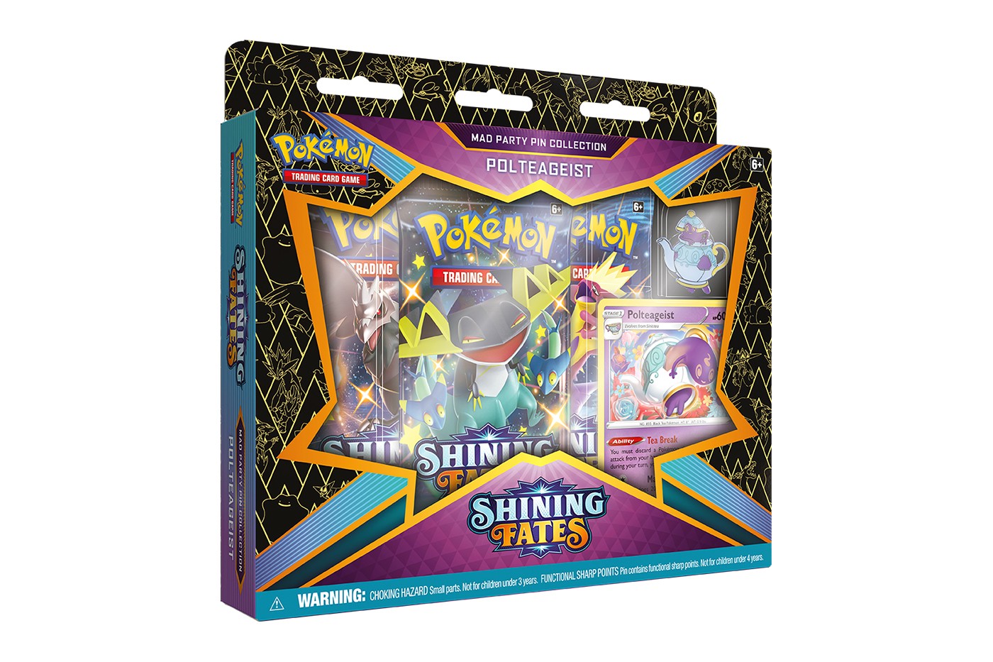 Nothing brightens a day like a proper Mad Party! Share a spot of tea with these four Pokémon, and throw a party like no other with this collection featuring Pokémon TCG: Shining Fates booster packs and a cool collector’s pin!